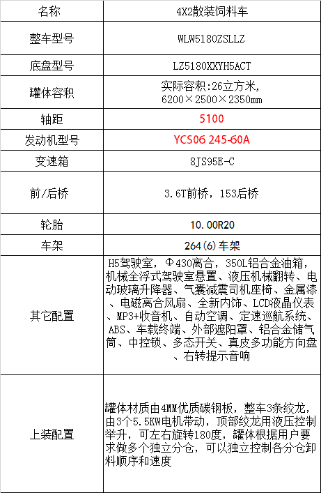 ?、?、柳汽乘龍H5高頂散裝飼料車(4*2)WLW5180ZSLLZ上裝部分由原廠公司承擔一年或三萬公里的免費上門維修。所有的上裝問題均由我公司直接與各廠車間協調派出人員上門維修。